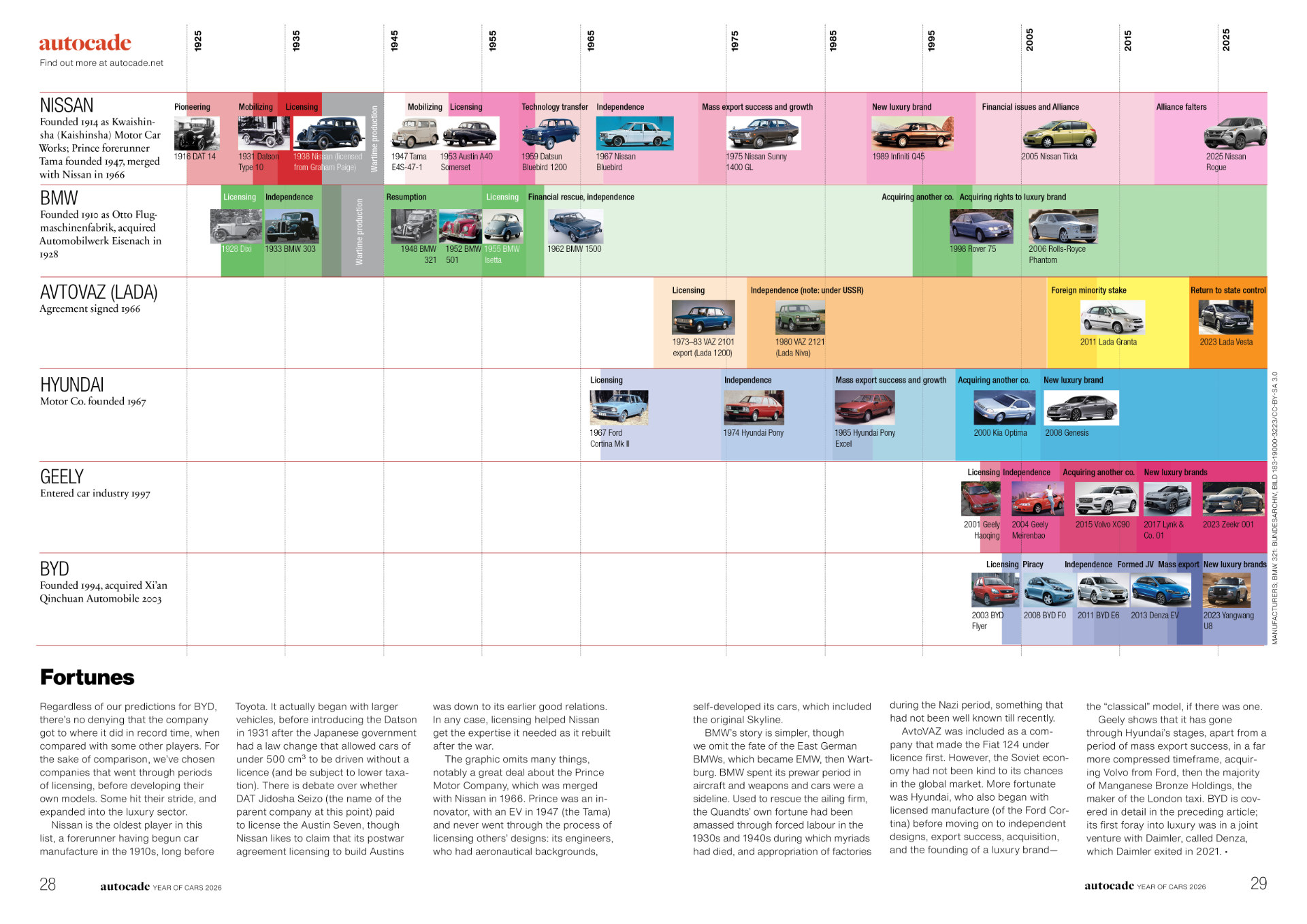 We’ve brought you more of what you love, with a 20-page guide to some of 2025’s (and a few of 2026’s) débutantes around the world, an analysis on whether there’s a 30-year cycle for car design, industry analyses including whether BYD will beat Ford in sales, how BMW’s kidney grille has morphed since its first appearance in 1931, and a celebration of 100 years of the Rolls-Royce Phantom.